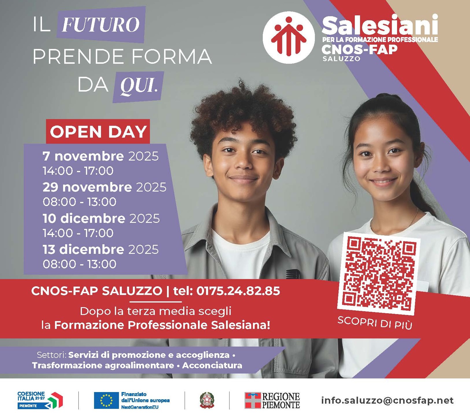 Il CnosFap, Formazione professionale Salesiana della sede di Saluzzo, per l’anno formativo 2026/27 presenta tre percorsi triennali (gratuiti) per giovani 14/24 anni, in uscita dalla